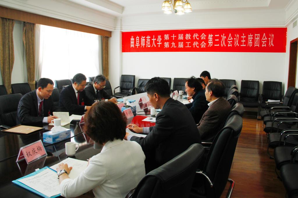 4月22日上午,我校第十届教代会暨第九届工代会第三次会议举行主席团会议,会议由学校党委书记戚万学主持。