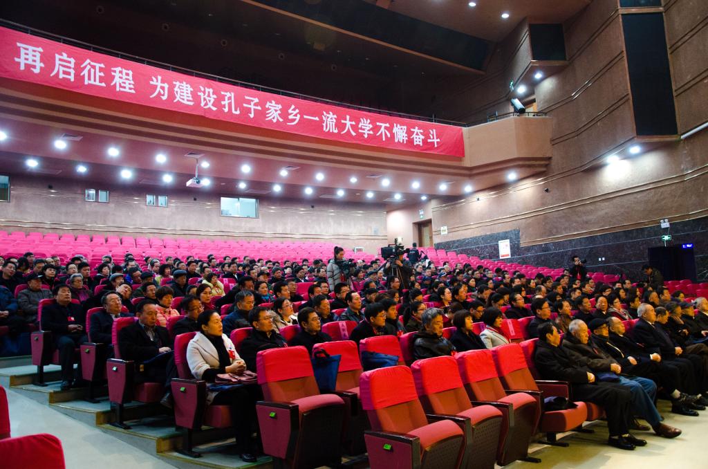 戚万学号召,全校党员干部和广大师生员工要紧密团结在以习近平同志为核心的党中央周围,在省委省政府的正确领导下,担负起新一代曲园人的崇高使命,不忘初心,继续前进,为建设孔子家乡一流大学而不懈奋斗!