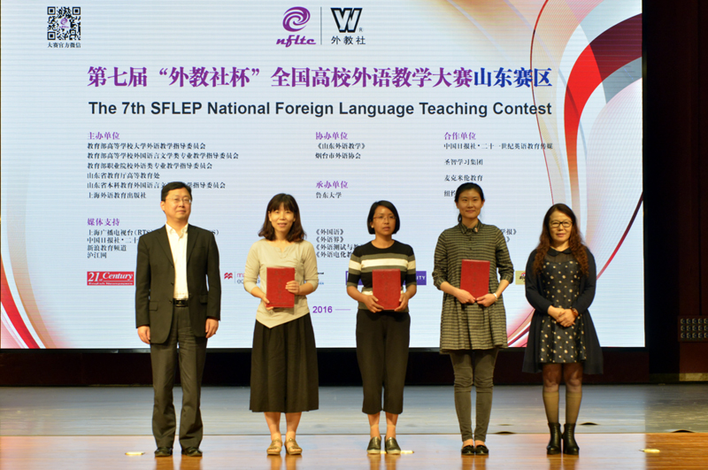 第七届“外教社杯”全国高校外语教学大赛(大学英语组)山东赛区决赛于522日在鲁东大学成功举办。本次赛事分为综合课组、视听说课组和微课组三个组别,分设初赛、复赛、决赛三个环节。我校公共外语教学部参赛教师在比赛中展示了良好的业务素质,历经各个赛段的激烈角逐,最终取得了骄人的成绩。