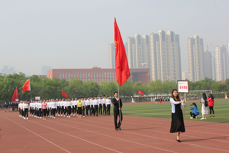 各学院方队入场后,升旗仪式开始。伴随着雄浑的国歌,五星红旗在师生的注目礼下徐徐升起。荆兆勋致开幕词,首先他对本次运动会的召开表示热烈祝贺,并向大会组委会及全体运动员、裁判员致以衷心的感谢。他指出,体育工作是学校教育事业的重要组成部分,是大学生健康成长、全面发展的保障。今年是我校十三五规划的开局之年,正是深入改革争创一流的关键时期。我校积极改建体育设施,丰富体育活动形式,课内与课外相结合,争取不断完善体育工作体系。他指出,各院学子接受检阅的同时,也是对他们良好精神风貌的展示,希望广大师生以此次运动会为契机,追求更高、更快、更强的目标,形成“崇尚运动,热爱体育,关注健康,全员参与”的良好氛围,提高健康意识,加上体育锻炼,为学校发展新目标做出积极贡献。随后,裁判员代表和运动员代表庄严宣誓,严守竞赛规则,维护体育道德,确保比赛的公平公正。