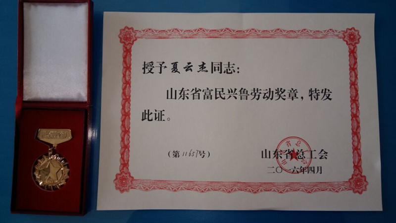 4月26日,山东省庆祝“五一”国际劳动节暨富民兴鲁劳动奖状(章)获得者表彰大会在济南召开,表彰各行各业涌现出的先进集体和先进个人。省委书记姜异康出席会议,省委副书记、省长郭树清讲话,省政协主席刘伟出席。我校学校办公室主任夏云杰荣获省“富民兴鲁”劳动奖章。
