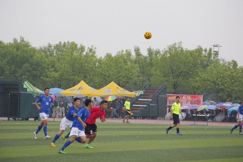 闭幕式上,全明星队和校队在雨中进行了精彩的足球表演赛。