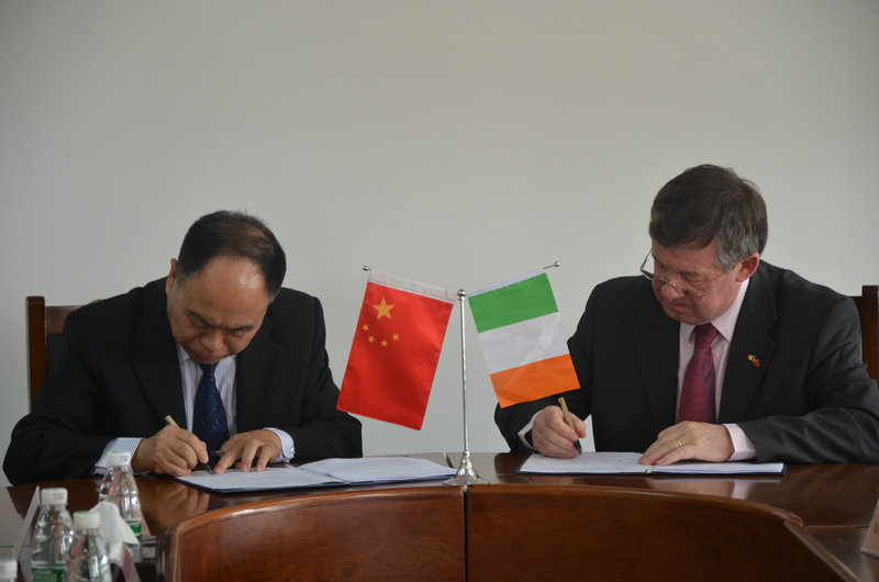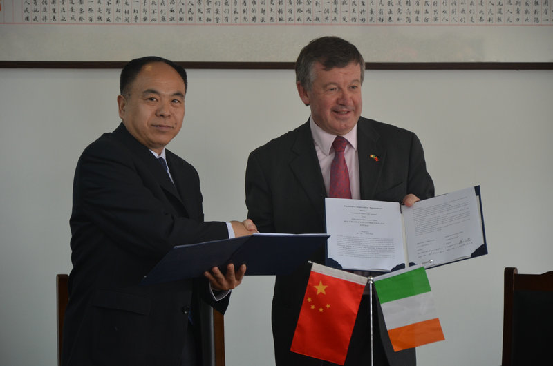 傅永聚与MichaelMurphy分别代表两校,共同签署了《玩球通中国有限公司官网与爱尔兰科克大学学生联合培养协议》。