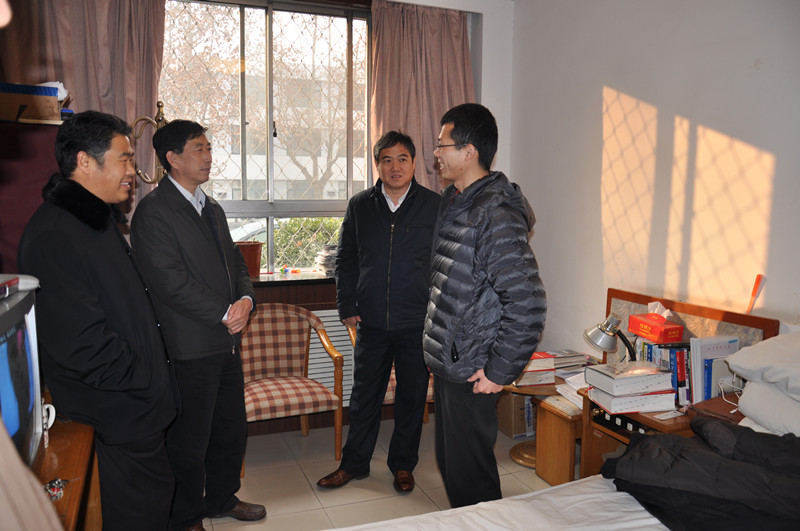 “来校工作以来各方面都习惯吗”,“打算在哪里过年啊”,“对新分配的周转房还满意吗”,“生活上还有什么困难吗”……在看望新进青年教师时,学校领导每到一处都细致周详地询问其生活、工作等各方面情况,并现场办公,敦促相关部门负责人对新进教师生活上面临的细节问题给予重视和解决,并勉励大家努力工作,与学校一起共创美好前景。新进青年教师对学校领导的悉心关怀表示感谢,并表示,学校对人才的高度重视让大家非常感动,一定会在今后的工作中不遗余力,为学校的发展贡献力量。