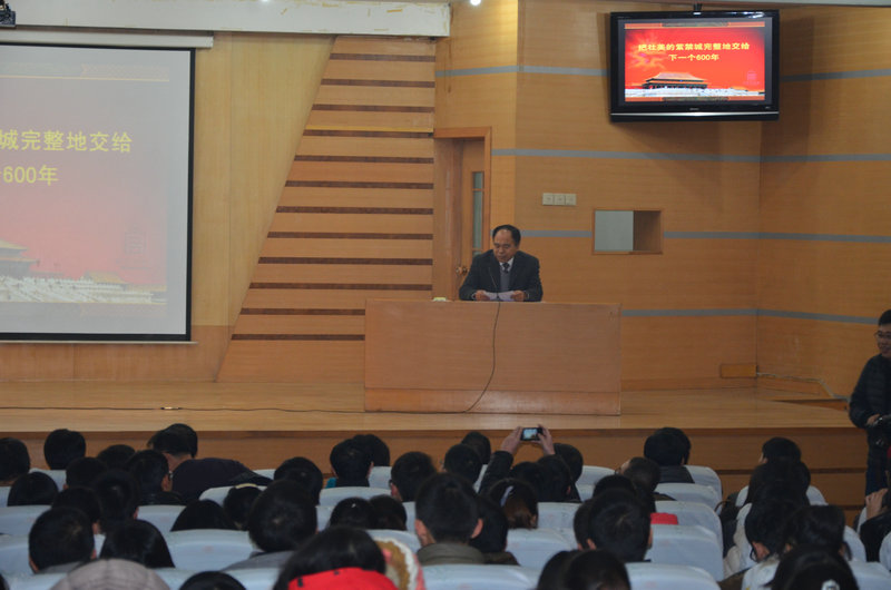 12月19日晚,我校孔子会堂座无虚席。文化部党组成员、中国文物学会会长、故宫博物院院长单霁翔应邀为我校师生作了题为“把壮美的紫禁城完整地交给下一个600年”的专题报告。校长傅永聚主持报告会,中国文物学会副会长兼秘书长黄元,山东省政府党组成员、特邀咨询张建国,山东省文化厅副厅长、文物局局长谢治秀,山东省博物馆、济宁市政府、政协以及曲阜市相关领导出席报告会,我校300余名师生到场聆听了报告。