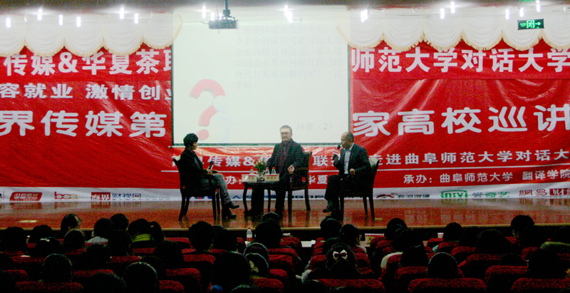 12月16日晚,由翻译学院承办的“从容就业•激情创业”商界传媒第八届全国高校巡讲活动在日照校区举行。永和集团董事长林炳生、华夏茶联董事长马玉峰走进曲园,与我校近千名大学生分享创业历程、畅谈人生感悟,并受聘为我校“创业就业导师”。