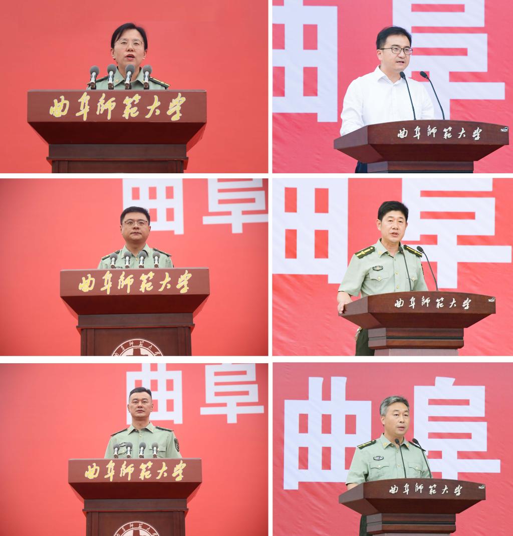 历史文化学院梁建阳和经济学院陈炫诺同学分别代表2023级参训新生发言。他们表示将听从指挥,不怕艰苦, 团结协作,用最饱满的热情和最昂扬的斗志迎接军训的挑战,誓言以军训为契机,强化国防观念,树立远大理想,明确发展目标,励志堪当民族复兴大任。