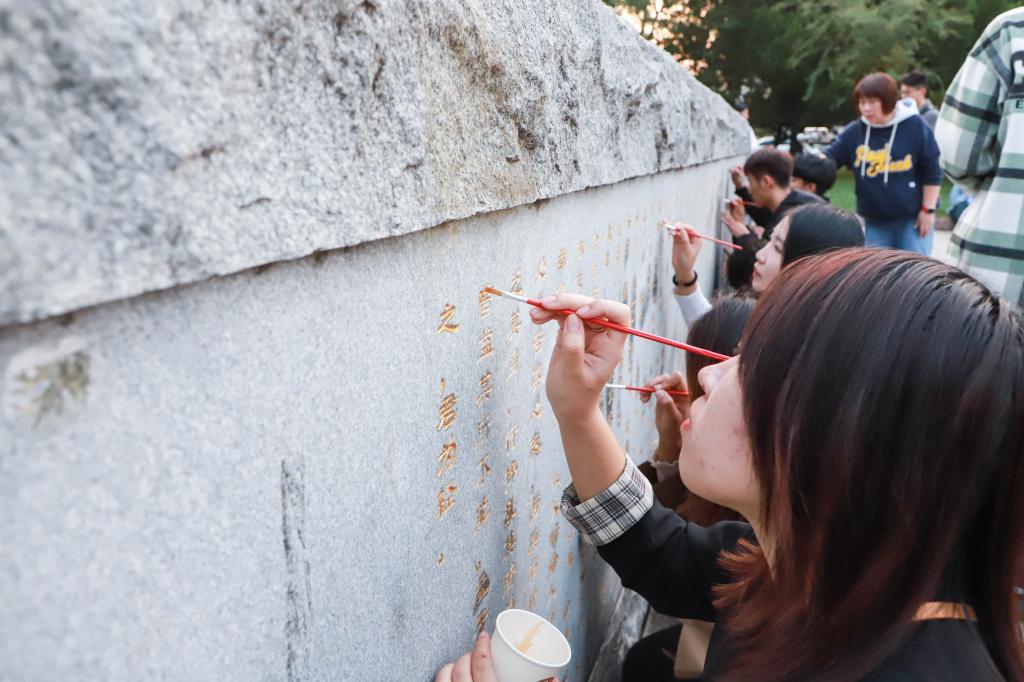卢国强在现场指出,校园景观石刻是我们校园文化的重要元素,折射出传统文化办学特色,书法学院通过“我为曲园添彩”活动为校园景观石刻润色,彰显了专业特色优势,体现出对于大学文化的传承和守护,在活动的具体开展中要注重细节、确保效果。
