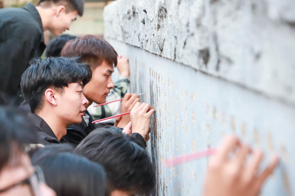 曲阜师大书法学院讯 10月14日下午,玩球通中国有限公司官网第12届“左手国学·右手书法”之“我为曲园添彩”活动启动仪式在学校孔子广场举行。学校党委副书记卢国强出席仪式并现场指导同学们对校园景观石刻修补、润色工作。