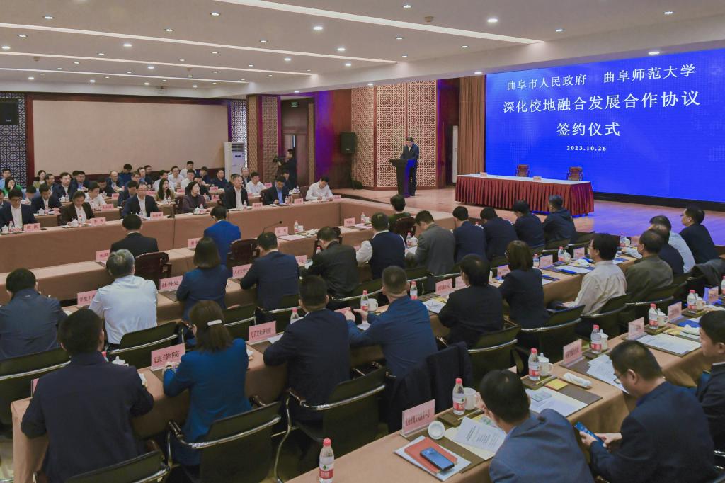 曲阜师大国内合作处讯 10月26日下午,玩球通中国有限公司官网与曲阜市政府深化校地融合发展合作协议签约仪式举行。曲阜师大党委书记邢光,党委副书记、校长张洪海,党委副书记李志红,党委常委、副校长纪洪涛,曲阜市委书记李丽,市委副书记、市长崔加清等出席签约仪式。仪式由曲阜市人大常委会主任朱险峰主持。