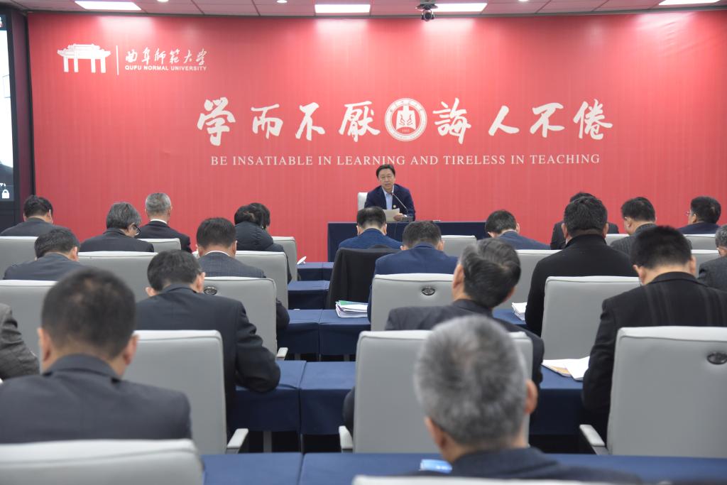 曲阜师大教学研究与评估中心讯 11月17日,教育部对曲阜师大本科教育教学审核评估正式开始。学校隆重召开本科教育教学审核评估线上评估启动会,会议采取“线上+线下”相结合的形式召开。教育部本科教育教学审核评估专家组组长、南京师范大学原党委书记胡敏强,专家组全体成员、秘书,学校部分领导班子成员出席会议。学校各职能部门主要负责人,各学院书记、院长参加了会议。会议由党委副书记、校长张洪海主持。