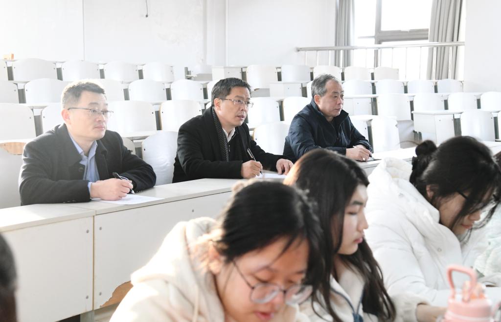 曲阜师大教务处讯  2月26日,2024年春季新学期开学第一天,学校党委领导班子成员张洪海、李志红、卢国强、胡钦晓、胡凡刚、刘刚、陈刚、纪洪涛、王明科、孙祥广,深入校园调研指导新学期教学工作准备情况,并与曲园学子同听“开学第一课”。