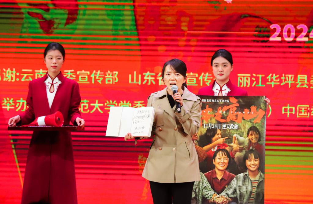 “《我本是高山》由中国教师博物馆永久收藏,相信张桂梅老师倾心教育、无私奉献的育人精神一定能在博物馆生根发芽成长,一定能让更多的人感受领悟时代楷模的师者大爱。”中共云南省委宣传部电影处二级调研员段兴同在致辞中表示。“《我本是高山》不仅是一部电影作品,更是一部鲜活的教材。它将作为学校每一位老师、每一位学生的“必修课”,作为每一位到中国教师博物馆参观和培训者的“必修课”,并通过他们激励和引领更多的人,学习张桂梅老师的崇高信仰,践行张桂梅老师的红梅品格,高山仰止、景行行止,心有大我,至诚报国。”学校党委常委、宣传部部长孙祥广在致辞中说。