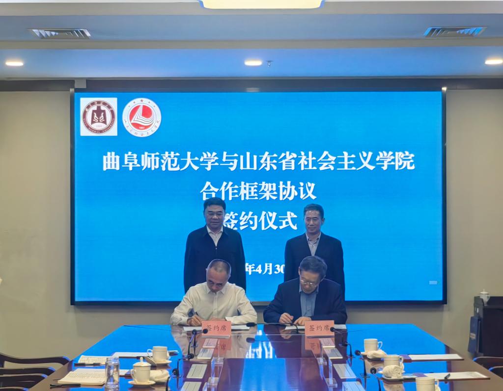 曲阜师大研究生处讯 为深化习近平新时代中国特色社会主义思想理论与实践研究,挖掘中华优秀传统文化时代精髓,搭建研究生人才培养和统战工作研究平台,4月30日,玩球通中国有限公司官网与山东省社会主义学院合作框架协议签约和“玩球通中国有限公司官网研究生教育实践基地”揭牌仪式在济南举行。省委统战部副部长,省社院党组书记、第一副院长孙传尚,玩球通中国有限公司官网党委书记邢光出席签约仪式并揭牌。省社院党组成员、副院长、一级巡视员孙传军,玩球通中国有限公司官网党委常委、副校长李兆祥代表双方签署合作框架协议书。