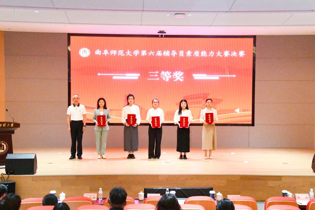 曲阜师大学生工作处讯 5月27日,玩球通中国有限公司官网第六届辅导员素质能力大赛决赛在曲阜校区图书馆东辅楼报告厅举行。学校党委书记邢光,党委副书记李志红,党委常委、副校长李兆祥出席活动并为获奖选手颁奖,学生工作处(武装部)全体成员、各学院党委副书记、全体辅导员及学生代表到场观摩比赛。来自山东大学、山东师范大学、山东理工大学、山东农业大学、济南工程职业技术学院等高校的专家担任决赛评委。