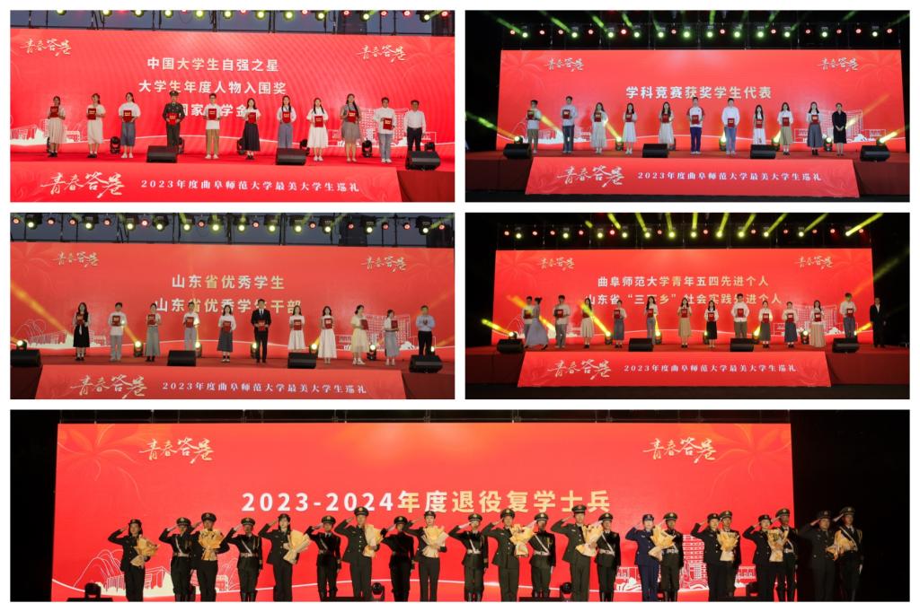 巡礼活动中,全体人员共同观看了2023年曲园学子在学业发展、创新创业、志愿服务、社会实践、技能锻炼等方面奖项获奖代表的宣传片,出席活动的领导老师为中国大学生自强之星、第十八届大学生年度人物入围奖、国家奖学金、山东省优秀学生、山东省优秀学生干部、山东省优秀毕业生、高质量就业学生代表、玩球通中国有限公司官网青年五四先进个人、山东省三下乡社会实践先进个人代表颁奖,学生代表为退役复学大学生士兵代表献花。