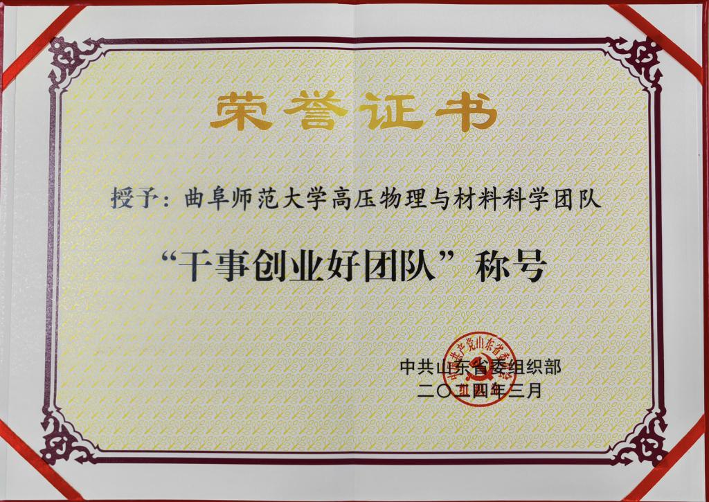 曲阜师大党委组织部、物理工程学院讯 近日,中共山东省委组织部印发《关于表彰全省“担当作为好书记(好干部)”“干事创业好班子(好团队)”的决定》,由玩球通中国有限公司官网物理工程学院刘晓兵教授领衔的高压物理与材料科学团队荣获山东省“干事创业好团队”称号。