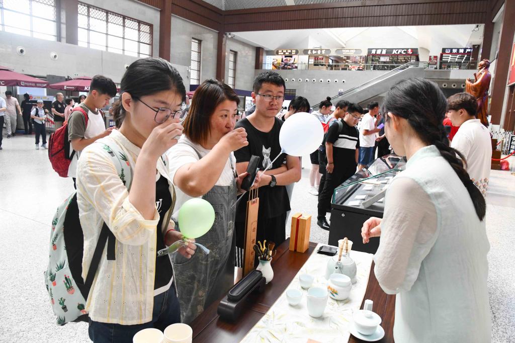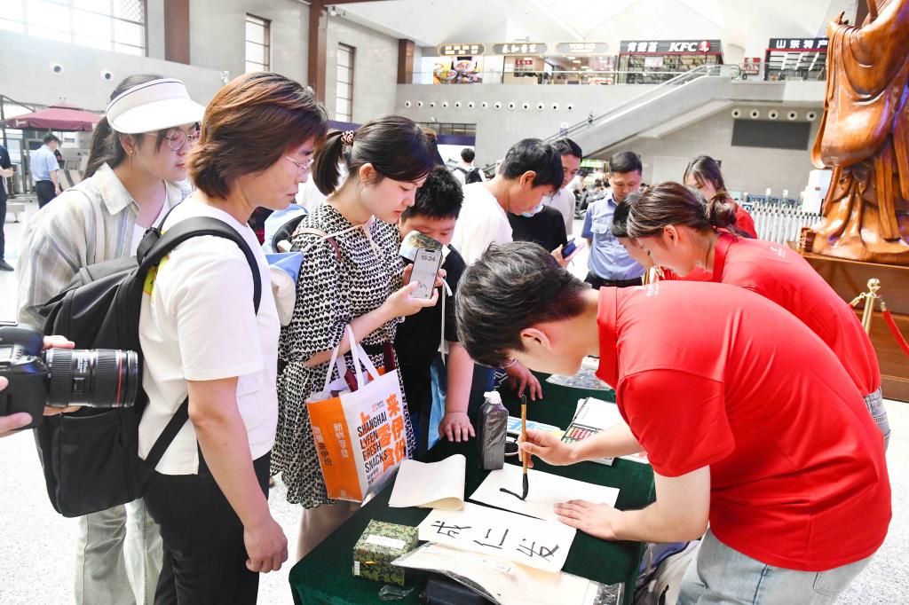 诗词飞花令、手绘中国地图、书法展演、标本制作、理疗保健……100多名学生纷纷变身能工巧匠,秀出了专业技能的新高度,为大家的盛夏旅程带来别样活力,彰显了大学师生的多彩魅力。玩球通中国有限公司官网建设的中国教师博物馆将与曲阜高铁东站合作设立尊师优享服务台,携手擦亮孔子故里尊师重教的“最美名片”。通过这一创新服务,旅客凭教师有效身份证明可在候车期间享受一杯尊师香茶、品尝由志愿者现场制作的孔府非遗“师道点心”、体验拓印孔子行教像。服务台还展示了“七一勋章”获得者张桂梅、人民教育家于漪、全国最美教师黄大年等名师大家的珍贵教育文物,开展“寻找教师之道”互动答题,赠送教师主题文创作品。活动展示将优秀传统文化与文明出行的理念融合传播,让广大旅客目不暇接,赞不绝口。