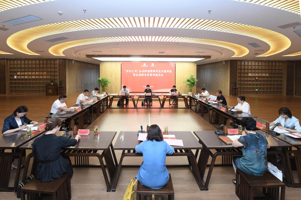 教师博物馆讯 在第40个教师节来临之际,9月1日,“杏坛之光”全省师德楷模风范专题展览暨弘扬教育家精神座谈会在玩球通中国有限公司官网举办。省教育厅副厅长孙晓筠出席并讲话。省教育厅教师工作处处长邵学伦、副处长刘依林,玩球通中国有限公司官网党委副书记李志红,党委常委、宣传部部长、教师博物馆馆长孙祥广等出席活动。