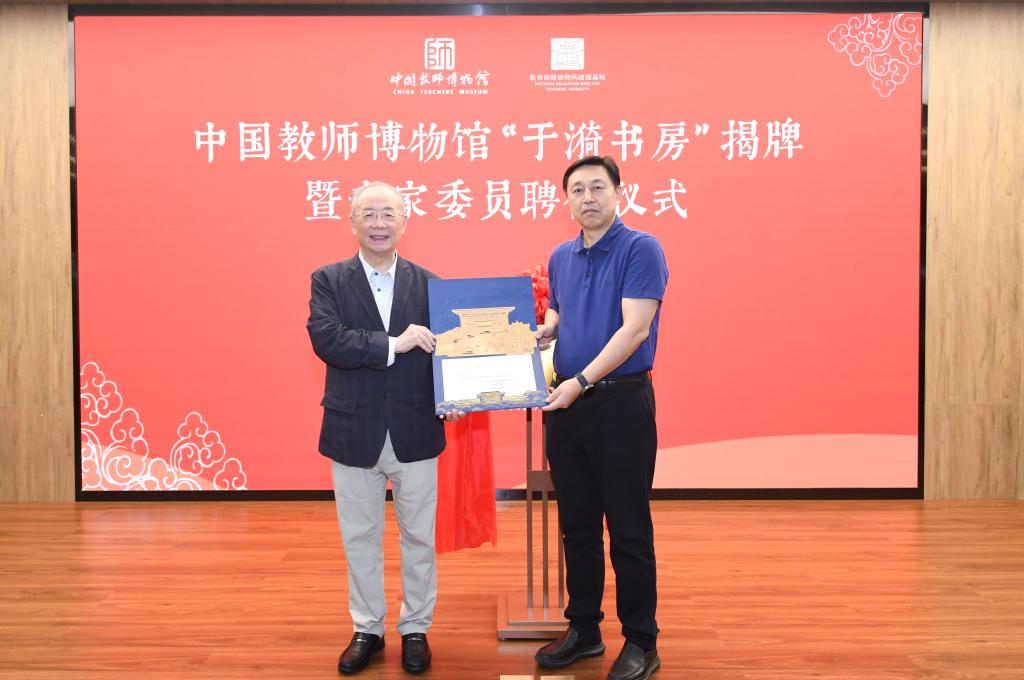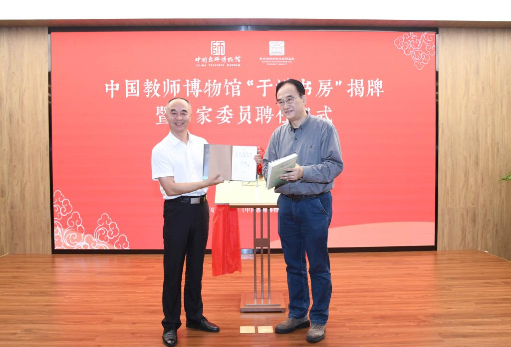 王荣华、张洪海共同为“于漪书房”揭牌,张洪海为王荣华颁发中国教师博物馆专家委员聘书。