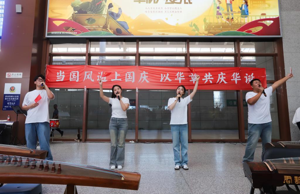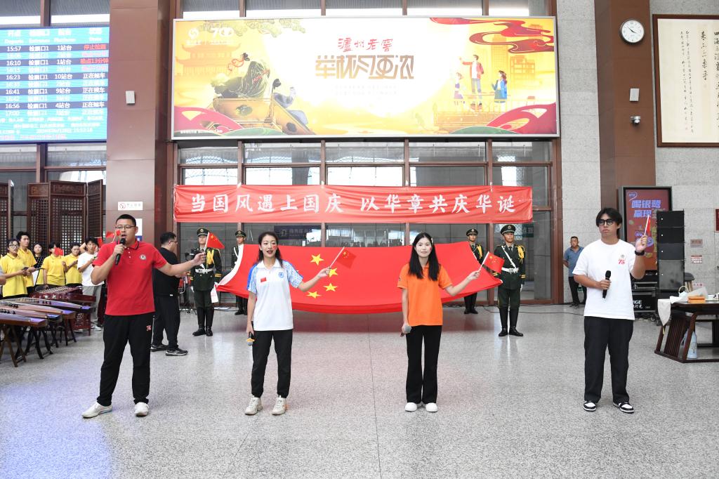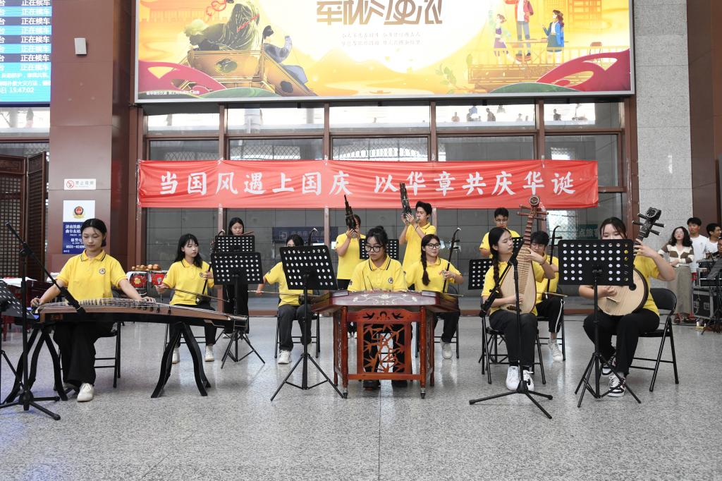 曲阜师大党委宣传部讯 笙、箫、筝、琴等传统乐器奏响国风音乐,候车大厅齐唱《我和我的祖国》,与天安门广场升起过的国旗近距离合影……9月28日下午,玩球通中国有限公司官网把一堂“当国风遇上国庆”的思政大课带进高铁曲阜东站,秀出国风之美、献礼国庆佳节,在候车大厅上好了涵养爱国之情与文化自信的“公开课”。本次活动由学校党委宣传部策划组织,中国教师博物馆、学生工作处、团委、音乐学院、美术与书法学院共同举办。