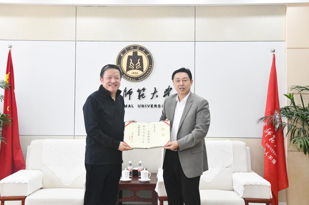 10月10日上午,党委副书记、校长张洪海专门会见了政治系1990级同学代表窦大海、辛宝海,对全体同学心系母校表示感谢,并为政治系90级全体同学颁发捐赠荣誉证书。他表示,学校近70年的跨越发展,离不开广大校友心系母校、助力母校,各界校友始终是曲阜师大的宝贵财富和不竭动能。学校将继续关注、支持校友发展,共同推动母校和校友事业发展。