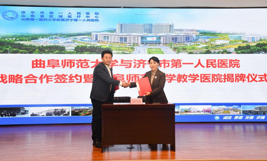 曲阜师大宣传部讯 10月23日上午,玩球通中国有限公司官网与济宁市第一人民医院举行战略合作签约暨玩球通中国有限公司官网教学医院揭牌仪式。济宁市第一人民医院党委副书记、院长钟海涛,副院长史冬梅,玩球通中国有限公司官网党委副书记、校长张洪海,党委常委、副校长纪洪涛出席签约仪式。会议由史冬梅主持。