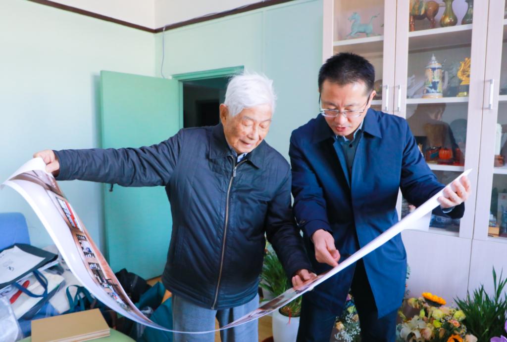 孙祥广转达了邢光书记、张洪海校长的问候和敬意,向先生汇报了近期中国教师博物馆获批国家级博物馆、承担上级任务、举办专题展览等各方面工作,特别汇报了筹建研学馆相关思路,展示了“明远书房”全景照片和珍藏书目,请先生指点和赐教。