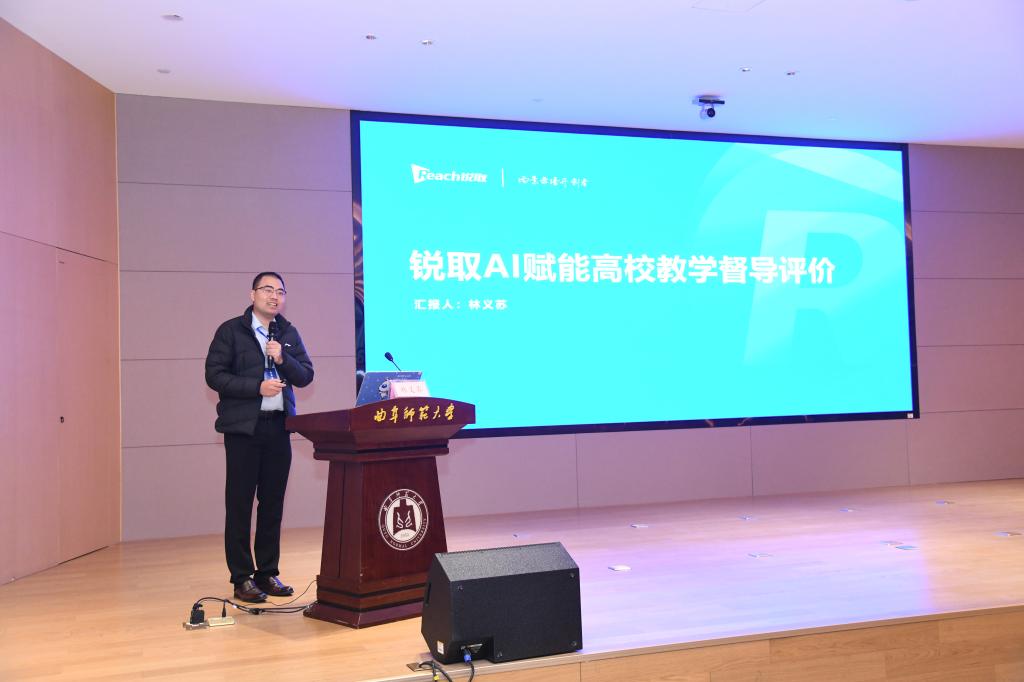 在学术报告与行业分享环节,教育部“长江学者”特聘教授、华东师范大学教授吴冠军,山西师范大学教育科学学院特聘教授王竹立,深圳锐取市场总监林义苏,华南师范大学教育信息技术学院院长、教授柯清超,平方创想创始人兼CEO、方略研究院院长王刚,江苏师范大学教授杨现民,分别以“从大语言模型到元宇宙——重思能动性与教育实践”“孔苏教育思想对数智时代拔尖创新人才培养的启示”“锐取 AI 赋能高校教学督导评价”“教育强国建设背景下教师教学能力的发展路径”“创新与高质量发展:高校数字化转型如何架构‘以评促建’”“迈向数字文明时代的未来学校建设”为主题,从跨学科与跨领域的多重维度,结合理论与实践的双重视角,阐释了数智时代未来教育发展的“元宇宙赋能的未来教育场景建设”“创新人才培养”“AI赋能教学督导评价”“教育强国建设与教师发展”“未来教育评价”以及“未来学校建设”等多方面的理论创新与实践经验。