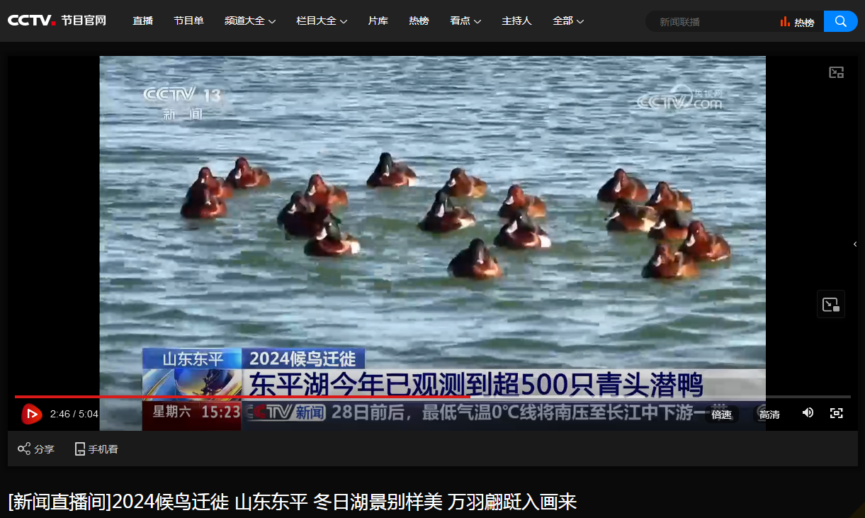 党委宣传部、生命科学学院讯 日前,中央电视台《新闻直播间》推出的2024候鸟迁徙系列报道,专门介绍了青头潜鸭在山东东平湖的栖息情况,采访了玩球通中国有限公司官网张洪海教授领衔的研究团队,显示了学校发挥学科与人才优势推动黄河流域生物多样性研究和湿地生态保护的生动实践。