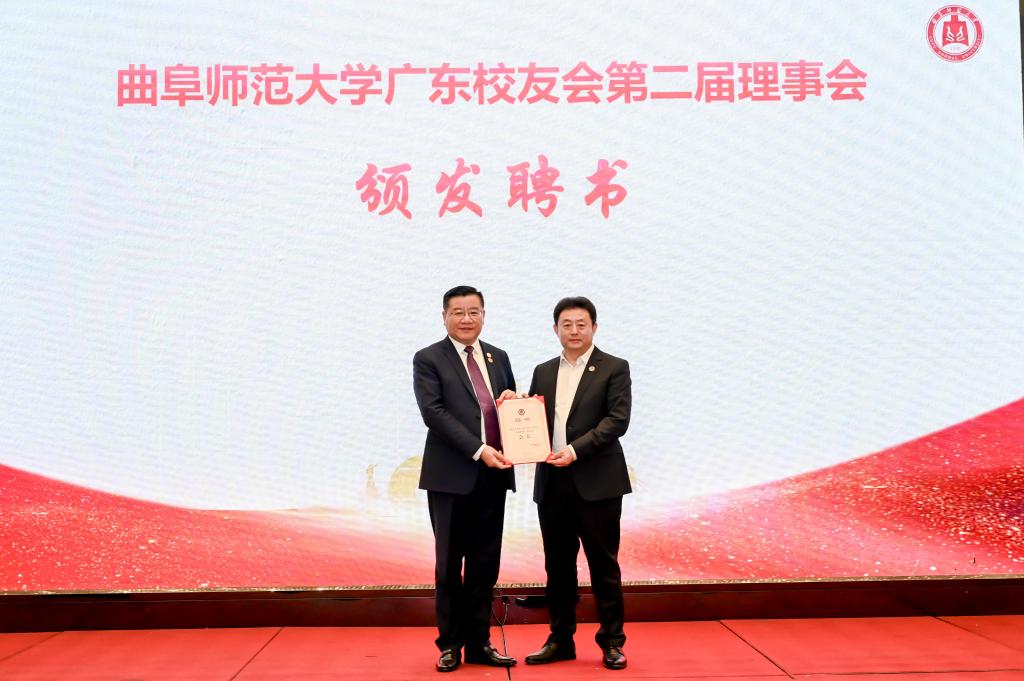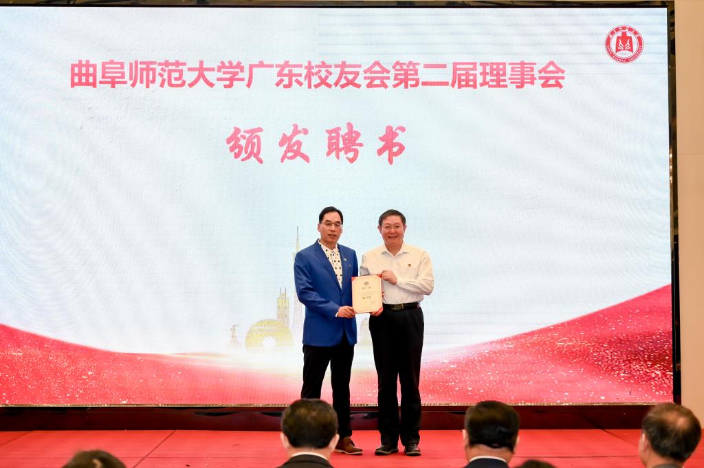 纪洪涛与刘德明共同为广东校友企业联盟揭牌并向第二届理事会会长、副会长颁发了聘书,并向通过玩球通中国有限公司官网孔子教育基金会向母校捐款6万元的政治1983级校友王海传赠送了捐赠证书。国内合作处处长、校友会秘书长孔宪福向第二届理事会秘书长、副秘书长颁发了聘书。学校相关学院党委书记分别与各分会会长共同为分会揭牌,并向会长、副会长、秘书长颁发了聘书。