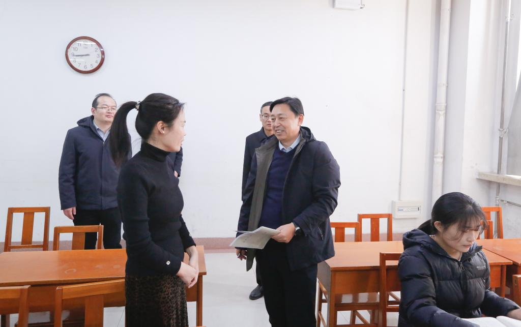 教务处讯  2月17日,曲阜师大2025年春季新学期第一天,学校党委领导班子成员张洪海、李志红、李兆祥、胡凡刚、刘刚、陈刚、纪洪涛、王明科、孙祥广走进课堂,与同学们同听开学第一课,为持续提升本科教育教学校准前进坐标。