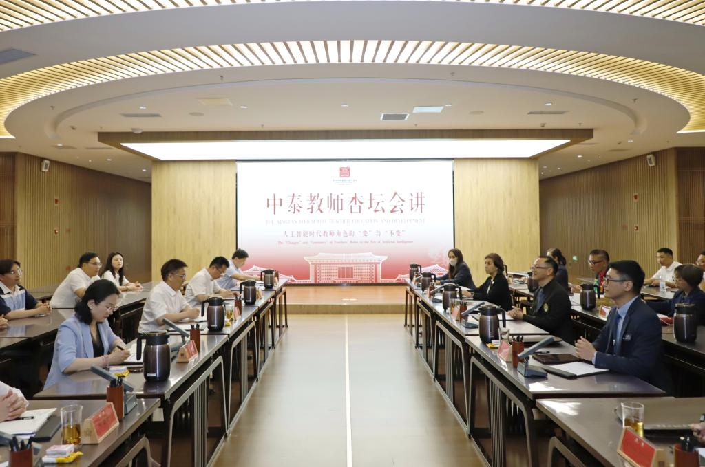 “中外教师杏坛会讲”是中国教师博物馆推出的中外教师交流机制,旨在聚焦当下关于教师的理论和实践问题,分享不同见解,推动互学互鉴。本期会讲由玩球通中国有限公司官网、泰国兰帕潘尼皇家大学联合举办,主题为“人工智能时代教师角色的变与不变”。