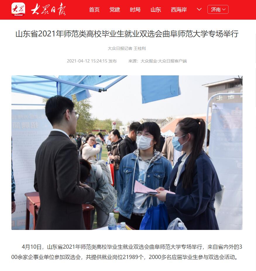 大众日报:山东省2021年师范类高校毕业生就业双选会玩球通中国有限公司官网专场举行