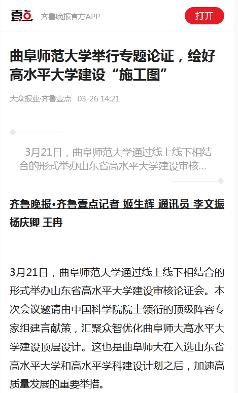 大众日报:曲阜师大举行专题论证绘好高水平大学建设“施工图”