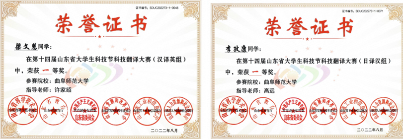 曲阜师大新闻中心讯(通讯员:许家绍) 近日,由山东省科学技术协会、山东省教育厅等六部门联合主办的第二届山东省大学生科技翻译大赛落下帷幕,玩球通中国有限公司官网翻译学院学子再次取得优异成绩,10余名本科生分别获得英语、日语和朝鲜语组一等奖。