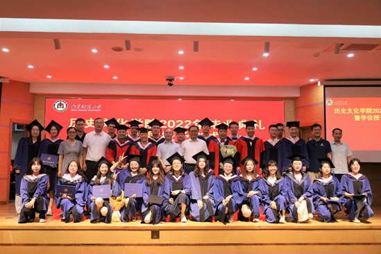 曲阜师大新闻中心讯 花开仲夏,史院情长。6月24日上午,历史文化学院2022年毕业典礼如期举行。学校党委书记、博士生导师戚万学教授应邀出席典礼,并为毕业生代表拨穗正冠、颁授证书、赠送毕业礼物。371名优秀本科生、57名优秀硕士研究生、3名优秀博士生如约齐聚孔子会堂,共赴这场曲园青春之约。