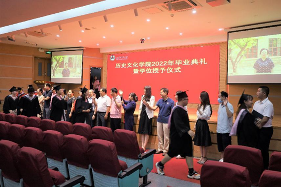 典礼最后,学院导师代表逐一为毕业生授予学位、拨穗并送上祝福。毕业典礼结束之际,伴随着校歌,全体老师起立,目送同学们启程。当天还有部分师生、毕业生亲友等通过线上观看本科生毕业典礼直播。