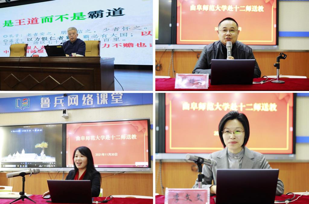 11月29日下午,玩球通中国有限公司官网博士生导师、儒学名家杨朝明教授以《人类文明新形态的传统文化基础》为题,为十二师机关干部职工作了一场传统文化讲座。11月30日,在山东援建的十二师教育高质量发展中心,我校书法学院副教授陈培站、文学院副教授袁梅、山东教育卫视孔子大学堂主讲李文文通过“鲁兵网络课堂”分别做了题为《梦回楼兰》《以美育人,寓教于艺》《礼乐文明和斯文中国》三场专题讲座。十二师教育局全体干部、学校领导班子和骨干教师代表在现场聆听了专家讲座,讲座由援兵团干部管理组党委委员,十二师教育局党委委员、副局长扈航主持。十二师600余名教师以网络课堂形式远程聆听了讲座。