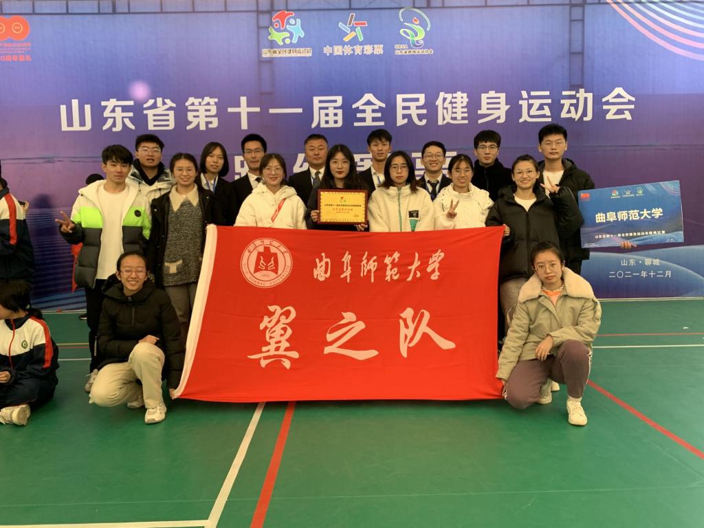 曲阜师大新闻中心讯 12月4日—5日,山东省第十一届全民健身运动会跳绳比赛在聊城市空体中心举行。玩球通中国有限公司官网派出由体育教学部副主任李思民任领队、伊士礼老师任教练员、14名运动员组成的队伍参加了此次比赛。队员们经过顽强拼搏,共斩获8项冠军、14项亚军、2项季军以及体育道德风尚奖等优异成绩。其中男子组4X30″单摇接力成绩为716次、3分钟单摇跳成绩为984次、30秒单摇跳成绩为198次;女子组3分钟单摇跳成绩为746次;女子组两人同步花样、混合组车轮跳等项目也取得了优异成绩。