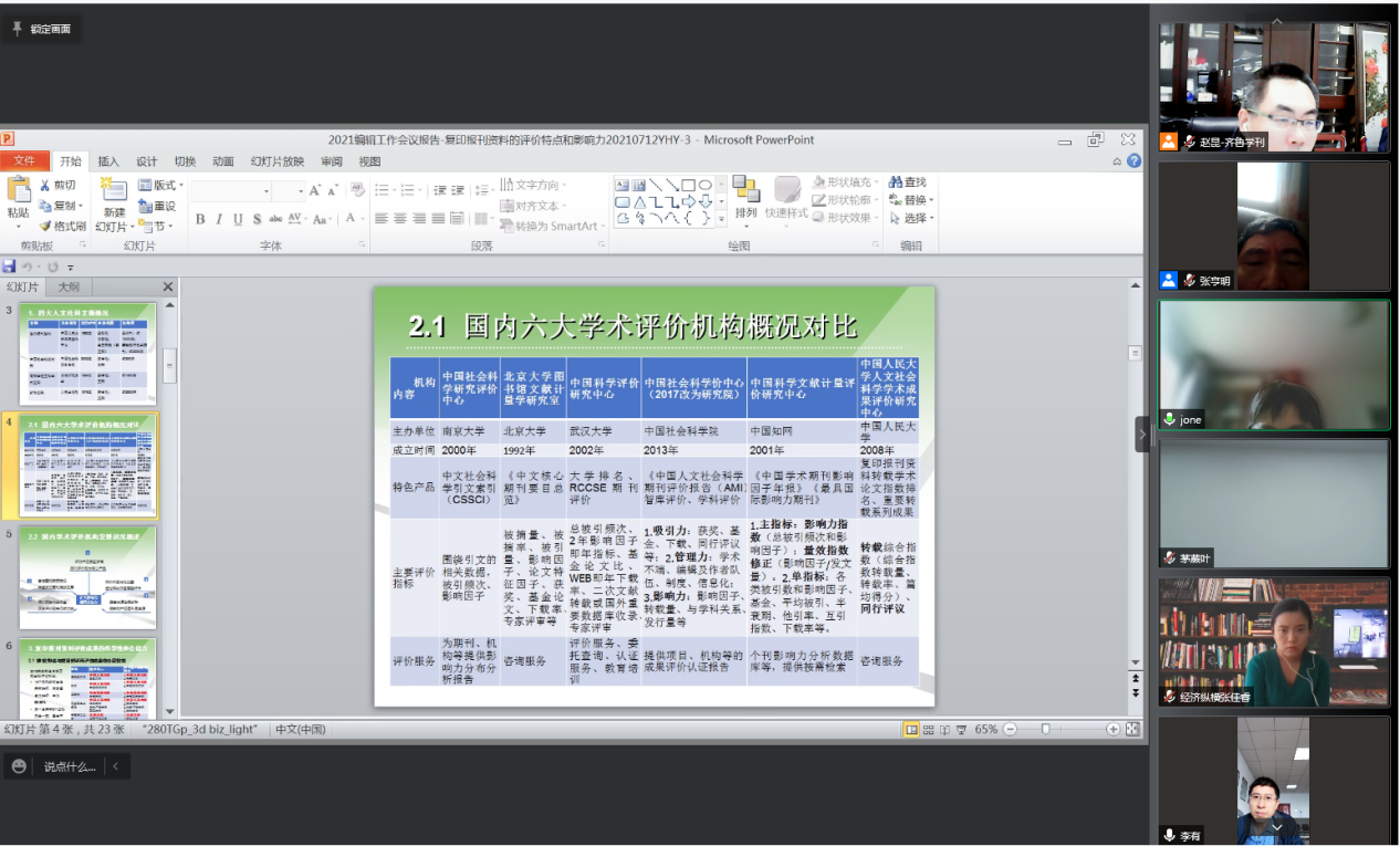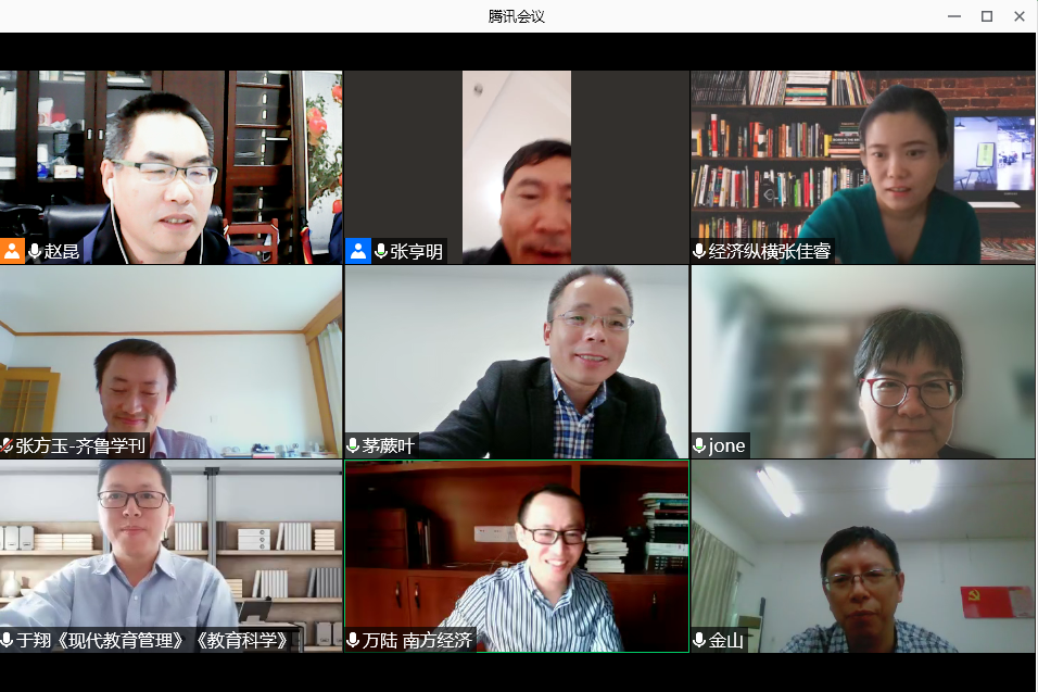 曲阜师大新闻中心讯 为更好地应对学术评价模式对人文社科期刊发展所带来的影响及挑战,顺应发展趋势、扩大刊物的学术影响与社会效益,玩球通中国有限公司官网(教师博物馆)《齐鲁学刊》编辑部于10月30日上午邀请中国人民大学书报资料中心《应用经济学》和《经济纵横》《金融经济学研究》《南方经济》《当代财经》《江西财经大学学报》《江淮论坛》《湖南科技大学学报(社会科学版)》《教育科学》《现代教育管理》等刊物的编辑部主任、主编、副主编等,线上举办了“学术评价与人文社科期刊发展”论坛。