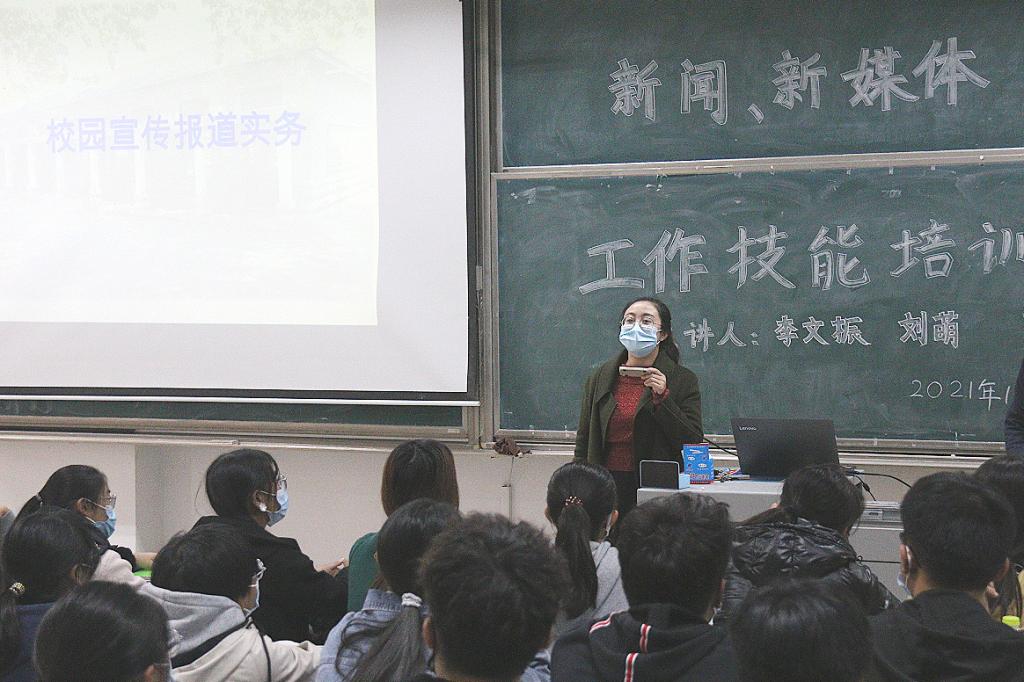 刘萌讲解了校园摄影、新媒体运营和网络素养三方面的内容。他介绍了校园事件类和风景类图片的拍摄方法、注意事项,讲解了常用的修图软件操作方法,向同学们分享了新媒体日常运营经验技巧。培训强调,作为学生干部应提升媒介素养,提高政治理论水平,坚持正确导向,尊重网络版权,共同做好校园新闻宣传工作。