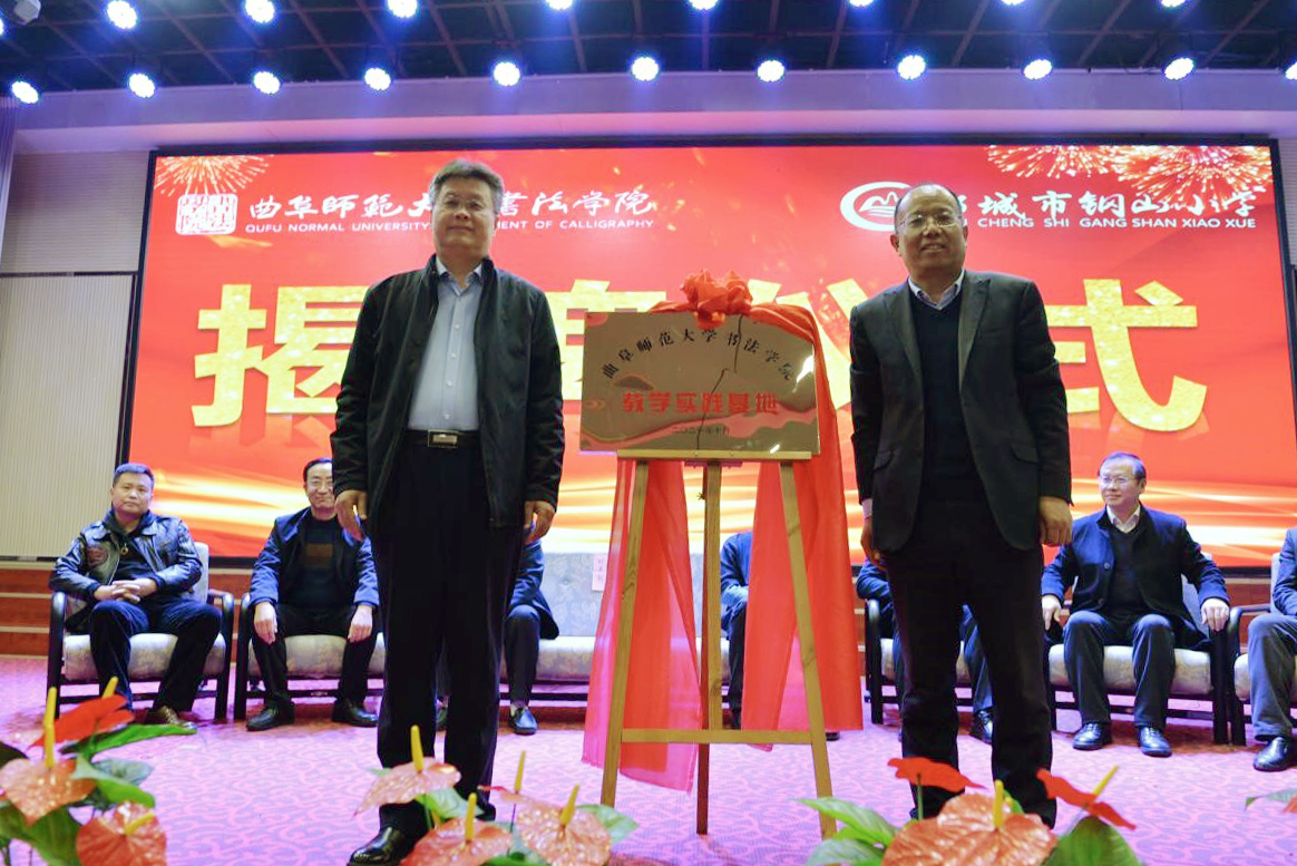 曲阜师大新闻中心讯 10月24号,玩球通中国有限公司官网书法学院教学实践基地签约、揭牌仪式在钢山小学举行,学院党委书记、院长刘建新,党委副书记胡乃永,副院长李建,书法教育研究所所长乌峰,教工党支部书记陈建参加活动。