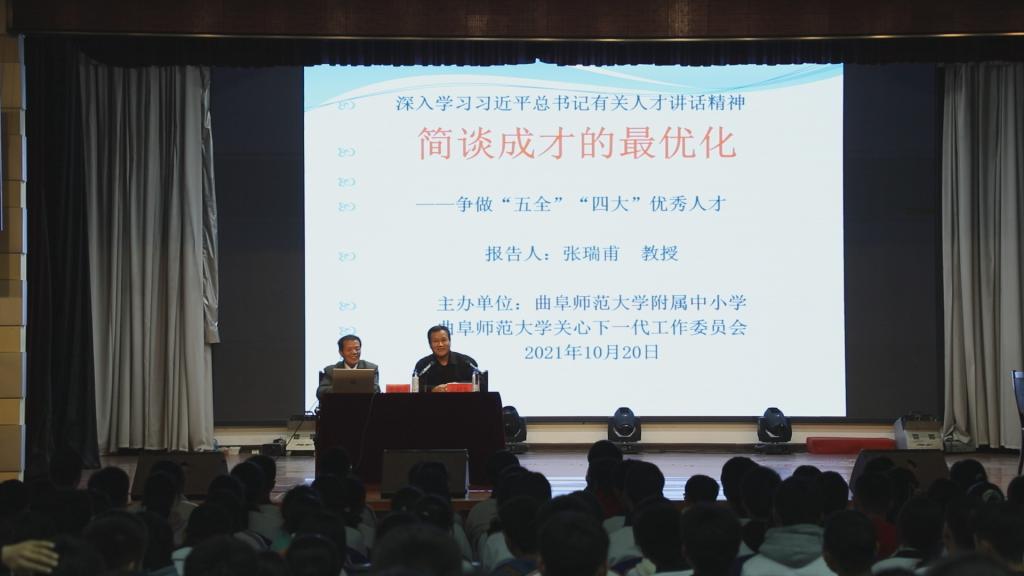 曲阜师大新闻中心讯(通讯员:霍彤彤 刘洪涛 摄影:刘根)10月20日下午,国务院政府特殊津贴专家、人生最优学与社会最优化原理创立者、玩球通中国有限公司官网马克思主义学院博士生导师张瑞甫教授到附属中小学作题为“成才最优化”报告。校长孟祥东,政教处主任刘洪涛,级部主任赵华卿,副主任王殿军、辛香梅及高一级部全体班主任和学生参加了报告。报告会由附属中小学、曲阜师大关爱下一代工作委员会共同主办,孟祥东主持会议。