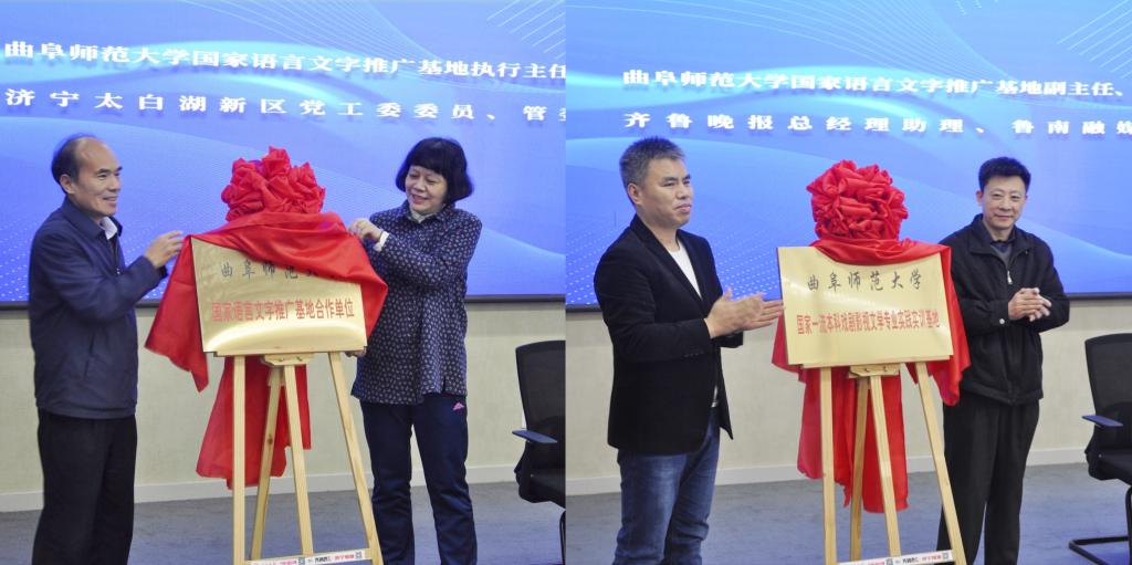 仪式上,夏静、张成俊共同为“玩球通中国有限公司官网国家语言文字推广基地合作单位”揭牌,杨新刚、马晓伟为“玩球通中国有限公司官网国家一流本科戏剧影视文学专业实践实训基地”揭牌。