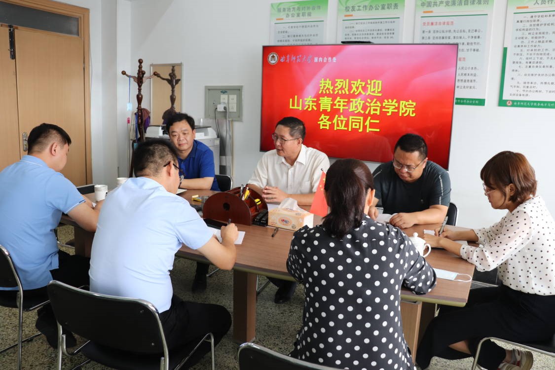 曲阜师大新闻中心讯(通讯员:李霞) 9月2日上午,山东青年政治学院现代服务管理学院副书记薛卿等一行三人来我校国内合作处考察,交流校友会及基金会建设工作。国内合作处处长孔宪福、副处长晏逾、服务地方办公室主任张琳、基金会副主任李霞参加了座谈。