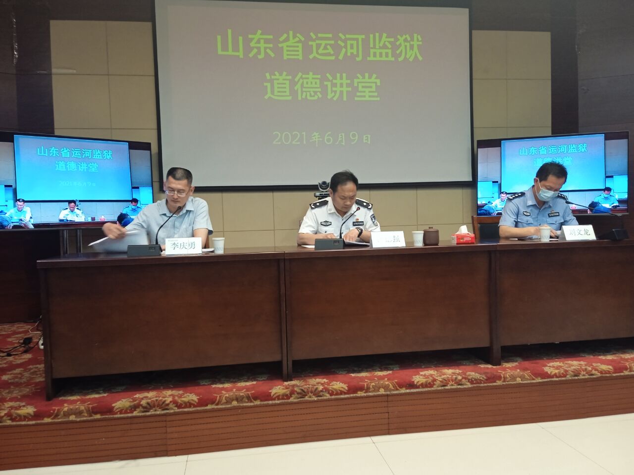 曲阜师大新闻中心讯 6月9日,我校关心下一代工作委员会在山东省运河监狱举办道德讲堂。运河监狱伊德强政委、刘文龙副政委动员全体干警和服刑人员启动“学习文史哲、创造新辉煌”的道德建设工程,并诚挚感谢玩球通中国有限公司官网三十年来对监狱教育工作的一贯支持。玩球通中国有限公司官网王文西教授、刘奉光教授则结合当前形势,阐解了爱党爱国、共克时艰、团结奋进的道德基础——中国优秀的文史哲传统文化。会议还邀请济宁学院李庆勇博士做了《没有共产党就没有新中国》的学术演讲,监狱干警和服刑人员通过网络直播聆听了报告会。