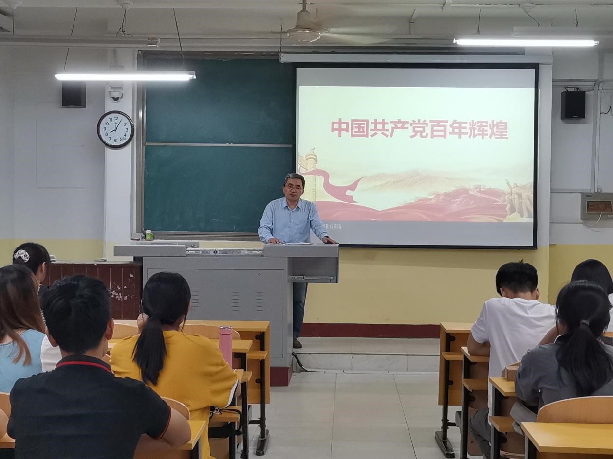 王海龙以“中国共产党百年辉煌”为题,为2019级物理学3班讲授了思政课,讲述了中国共产党百年辉煌历史的不同阶段,生动诠释了中国共产党带领中国人民从站起来、富起来到强起来的奋斗历程。王海龙激励同学们磨砺品格,树立为祖国刻苦奋斗、赤诚奉献的坚定理想。