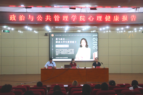 曲阜师大新闻中心讯(通讯员:姚开严 摄影:杨宁) 为开展好心理健康教育月系列活动,5月28日下午,政治与公共管理学院特邀中国矿业大学段鑫星教授为师生作了“爱与成长——解读大学生爱情魔方”的心理健康专题报告,玩球通中国有限公司官网学生工作处处长姜美颖、马克思主义学部党委副书记张忠凯出席报告会。