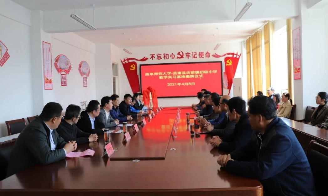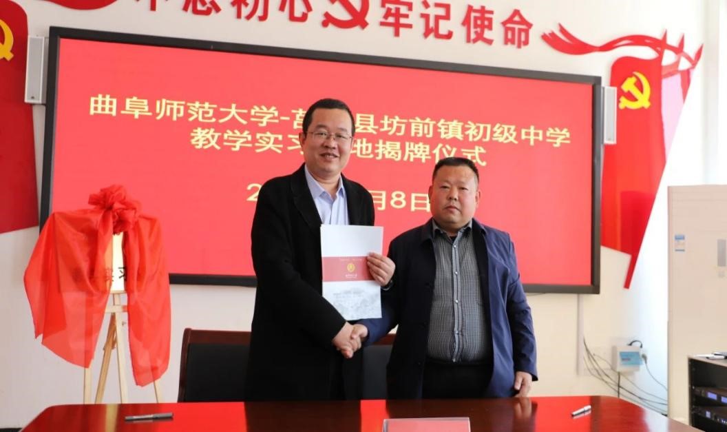 曲阜师大新闻中心讯 4月8日上午,为深化师范专业教育教学改革,推进玩球通中国有限公司官网与地方学校的合作,体育科学学院在学校派驻莒南县坊前镇第一书记工作组的支持下,在莒南县坊前中学举行教学实习基地揭牌仪式。学院党委书记刘敏、院长助理曾凡鑫、伊超等,玩球通中国有限公司官网派驻坊前镇第一书记工作组王慕东、魏伟、刘建河、钟振洪、孔喜良,坊前镇党委政府主要负责同志以及坊前中学负责人、部分教干、教学骨干参加本次仪式。坊前镇党委副书记刘泉田主持仪式。